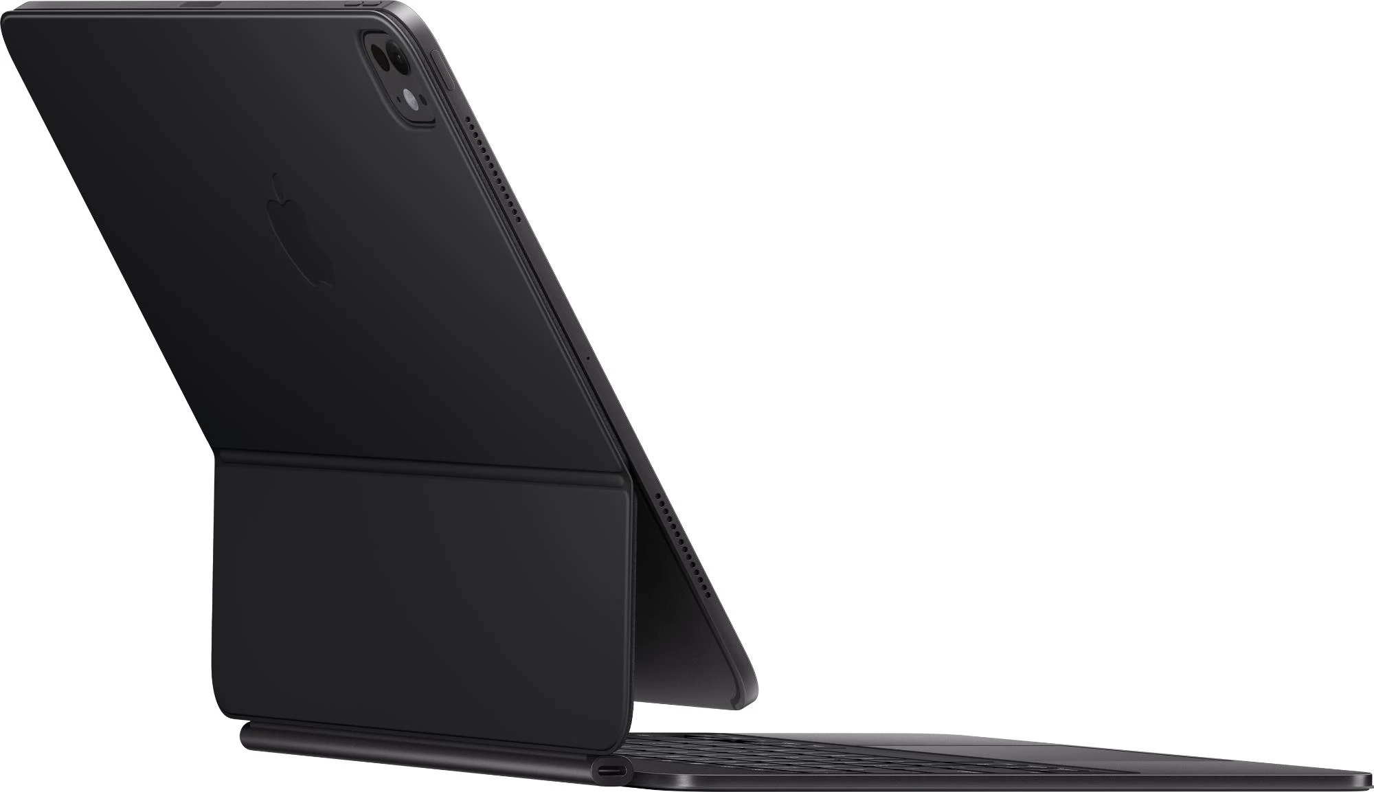 Das Magic Keyboard hat ein freischwebendes Design, dessen Scharnier stufenlose, anpassbare Betrachtungswinkel ermöglicht. Beleuchtete Tasten mit Scherenmechanismus und eine Funktionsreihe mit 10 Tasten geben dir mehr Vielseitigkeit als je zuvor. Das integrierte Trackpad aus Glas kommt mit haptischem Feedback und Unterstützung für Multi-Touch Gesten und den Cursor.