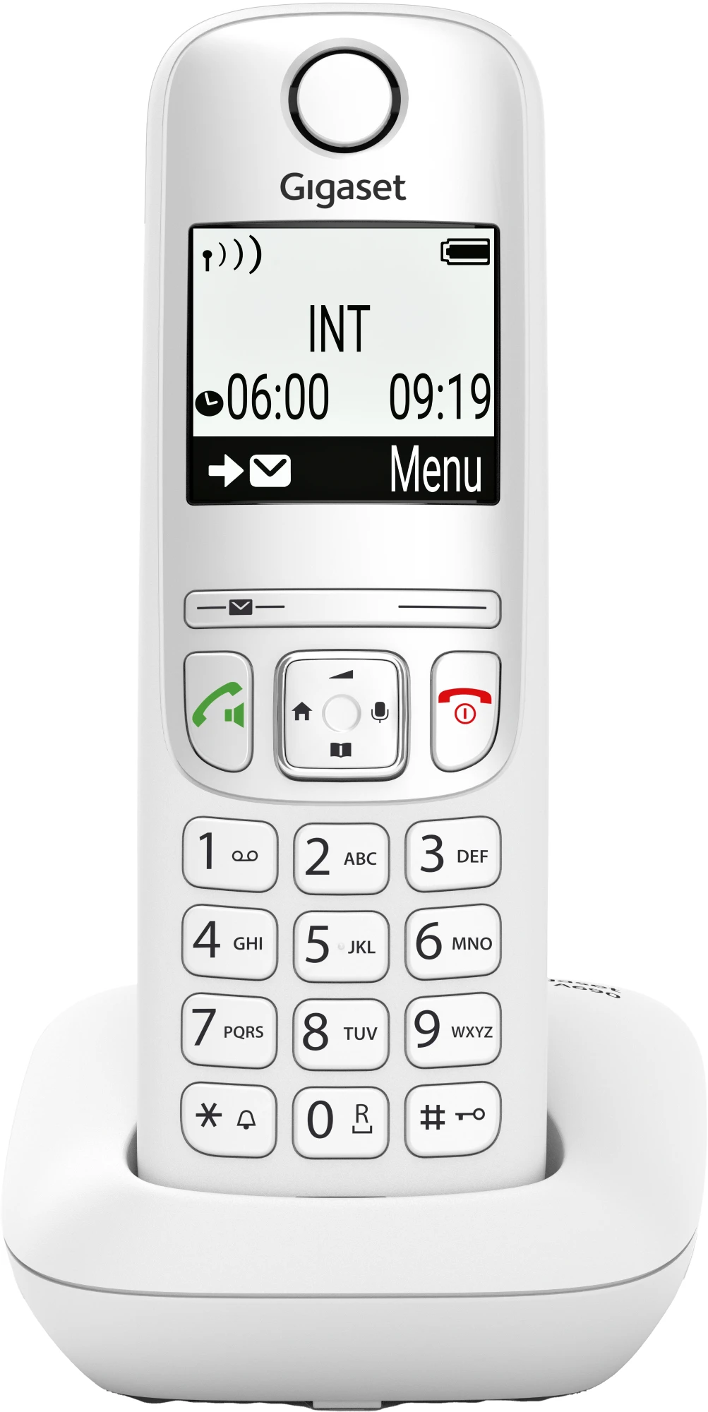 Was am Gigaset A690 zuerst ins Auge sticht, dürfte das große, beleuchtete Schwarz-Weiß-Grafik-Display sein. Das hat viele Vorteile: Der starke Kontrast von schwarzer Schrift auf weißem Hintergrund oder die große Ziffernanzeige im Wählmodus zielen bewusst darauf ab, das Bedienen noch einfacher für Sie zu machen. Zusätzlich sorgt eine ergonomische Tastatur mit beleuchteten Tasten und intuitiver Handhabung für hohen Komfort beim Telefonieren.